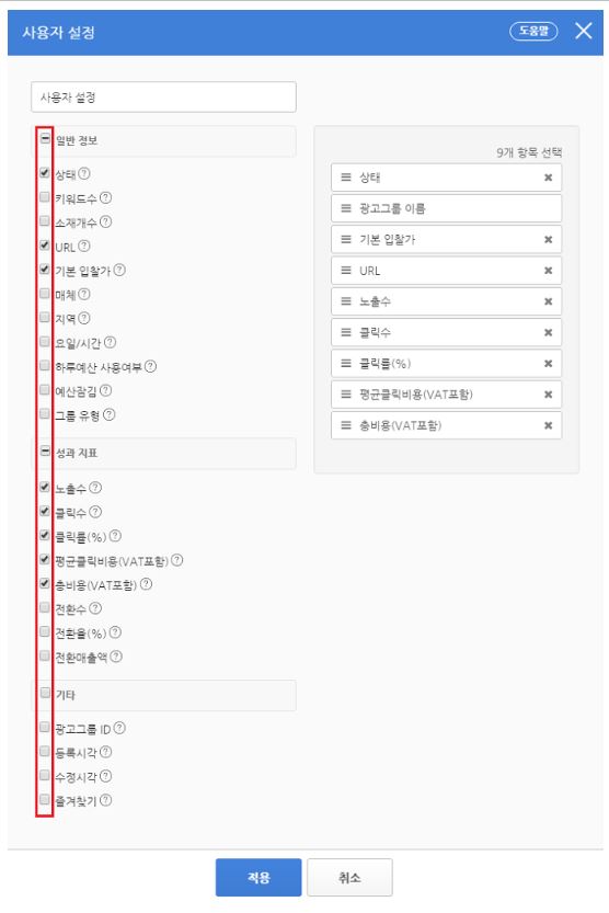 사용자 설정으로 들어가서 여러분 광고의 전략과