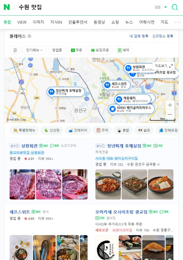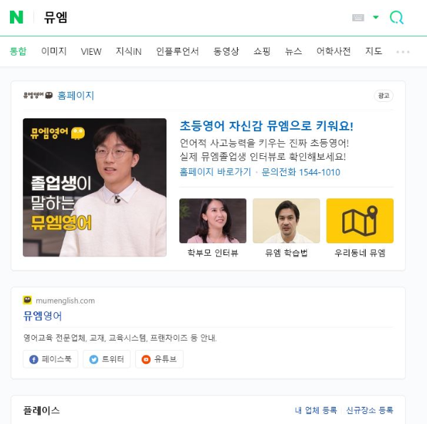 특정 장소를 검색 시에 통합검색 플레이스 영역에