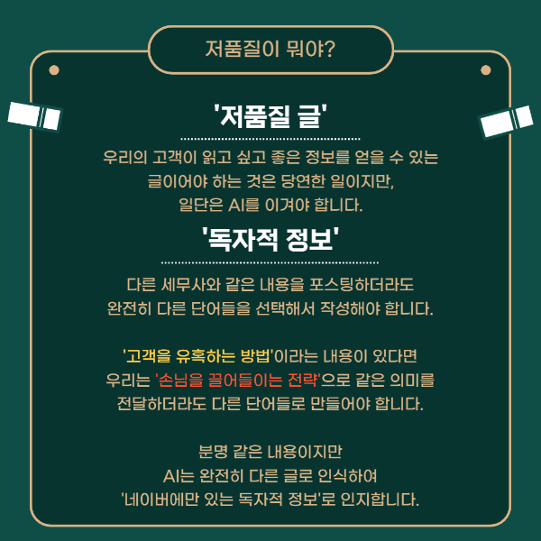AI는 복사된 정보로 인식하여 저품질 글로 분류합니다.